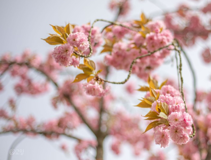 올해 벚꽃의 개화가 늦어진 만큼 겹벚꽃의 개화시기도 늦어진다고 합니다. 연분홍빛 벚꽃에 비해 풍성한 꽃잎과 진분홍색의 화려한 색채를 담은 겹벚꽃은 일반 벚꽃과는 또 다른 매력을 선사해