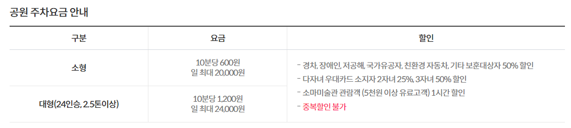 ■ 주차요금 : 승용차 (10분당 200원) / 중형,승합 (10분당 400원 ) / 16인이상 대형 (10분당 600원)