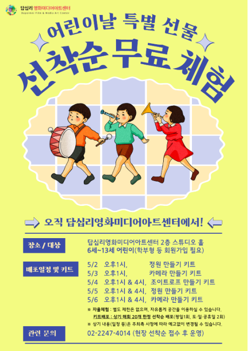 "어린이날 특별 선물 선착순 무료체험" 답십리 영화미디어아트 센터