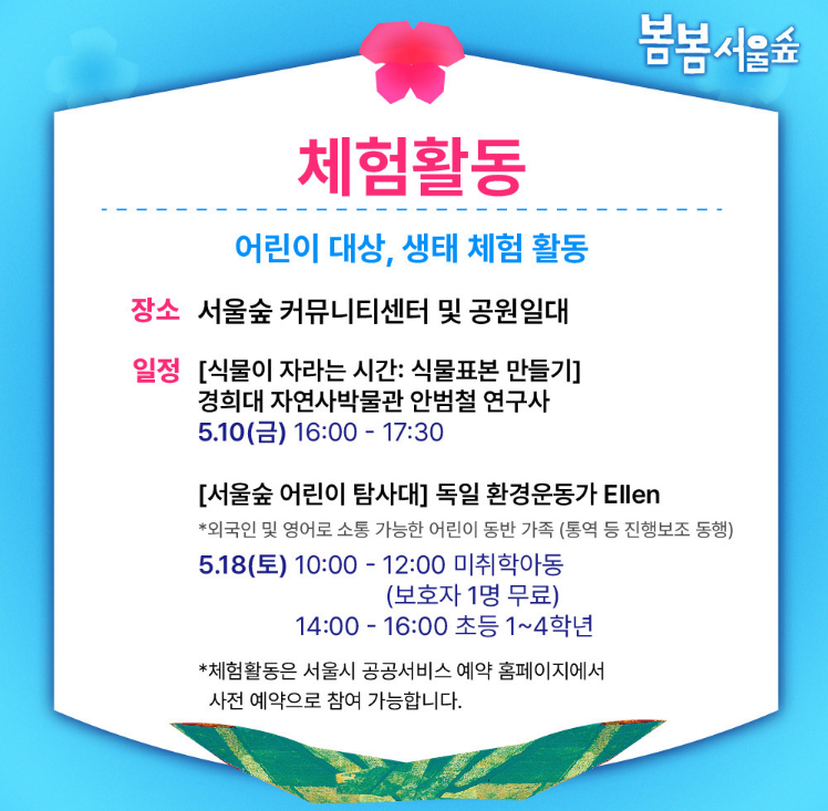 ■ 문의: 동부공원여가센터 공원여가과(02-460-2943)