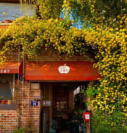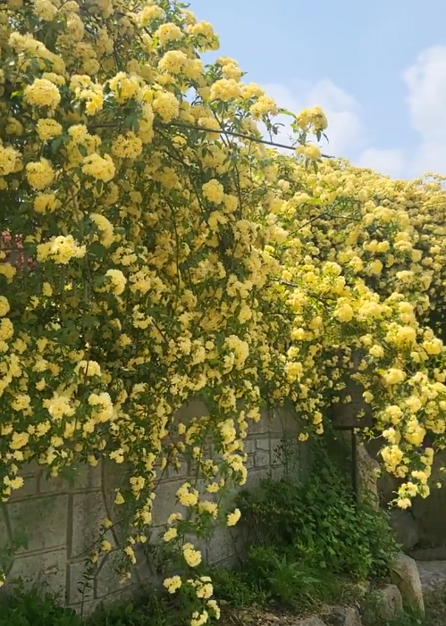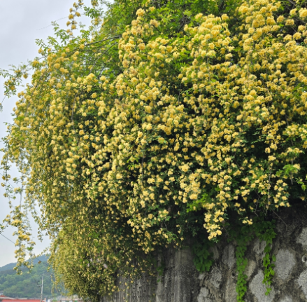 대구 용계동에 위치한 은율강은 얼마전까지만 해도 잘 알려지지 않았던 곳입니다. 비밀정원같은 분위기에 골목안에 자리하고 있어 아는 사람만 알던 숨겨진 목향장미 명소였는데, 최근 SNS통해 꽤 많이 알려져서 인지 올해는 찾아오시는 분들이 많이 늘었다고 해요. 위에서 부터 폭포처럼 쏟아져 내려오는 목향장미 덩쿨이 굉장히 예쁩니다.