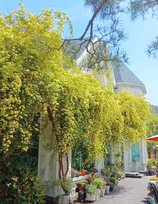 대구의 목향장미 카페 큐바이쿼트는 워낙 유명한 목향장미 명소라 모르시는 분들이 없으실거에요. 해마다 목향장미가 피어나는 시기가 되면 사진을 찍기 위해 방문하시는 분들이 상당히 많은고이에요. 카페 안에도 풍성한 목향장미를 감상하룻 있는 공간과 포토존이 마련되어 있고 외부에서 보는 파스텔톤의 노란 장미덩쿨은 신비롭기까지 하답니다.
