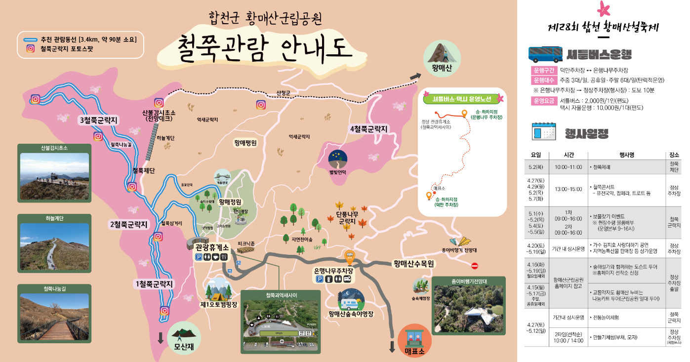 ▶철쭉관람 안내도 (세부 등산로 및 유료 프로그램은 홈페이지를 참고하세요)